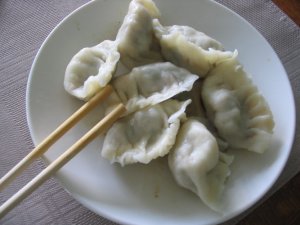 I start work in about two weeks. Normally, I have no anxiety about work, but this time it is a little different. I have a crazy job for which I feel hopelessly unqualified. I am a cook. On a sailboat. My only qualifications, that I can think of, are that I have FoodSafe (haha.. yay foodsafe) and enjoy cooking. Oh, and I know how to make bread. But I have no idea where to start when it comes to planning meals and purchasing supplies for 30-odd people. Yikes! So I’ve been looking at recipes and evaluating their “boat-worthiness” lately (I have been assistant cook on the boats before… all the fun and none of the prep and planning). Dad and Colleen have been more than willing to try my experiments. Behold the latest creation: Chinese-style dumplings! We learned (partially-the filling and folding only) how to make them when I was in China and so I decided to give it a try. No one has died yet, so that is a good sign!